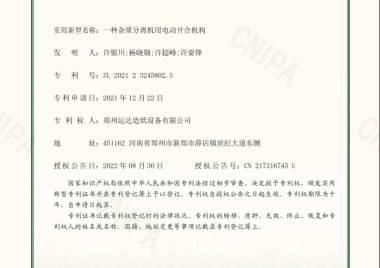 An Electric Opening-and-Closing Mechanism for an Impurity Separator