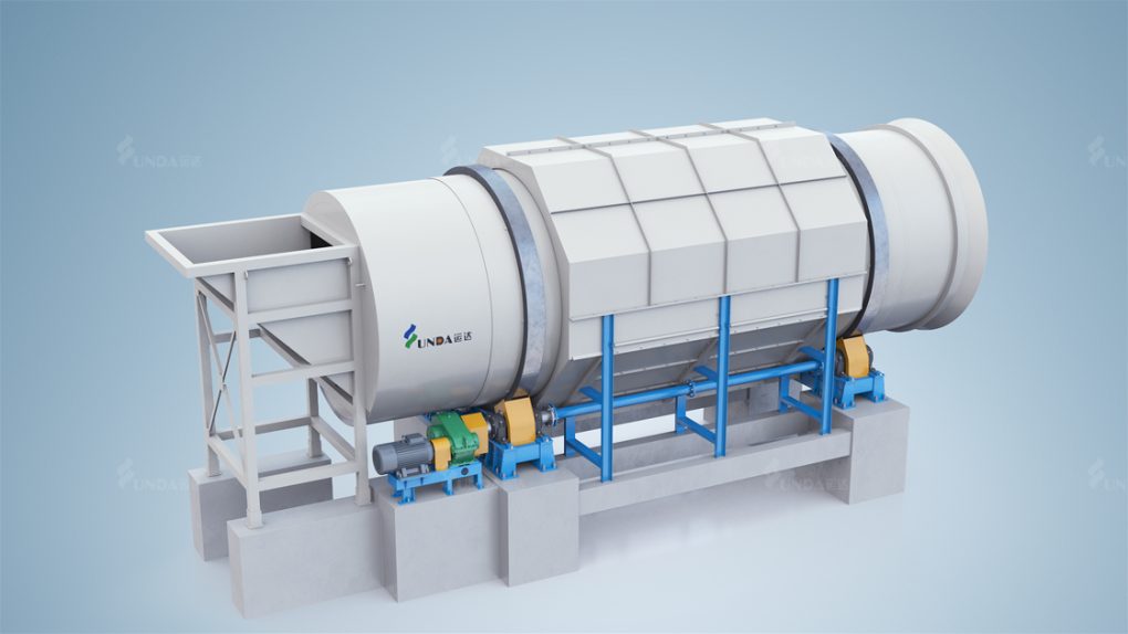 Tightly baled waste paper is transferred to feeding device by chain conveyor, and then enters the rotating cylinder for breaking and primary screening. Lifting boards lift materials to a certain height and then loose. Materials freely fall and hit the spiral band, other lifting boards and inner wall of cylinder, and then are thrown, pressed, smashed, crushed, stabbed and torn.