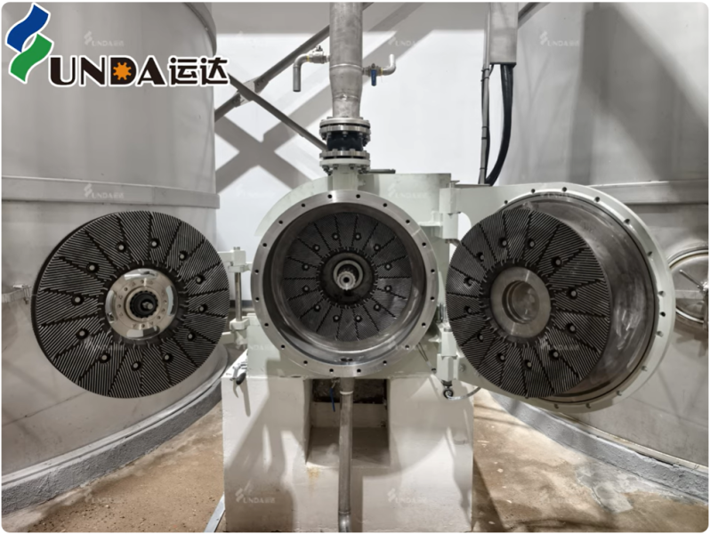 During operation, pulp passes between two discs—either one rotating and one stationary, or both rotating. The specially designed bar and groove patterns on the disc surface apply mechanical forces to the fibers, improving their bonding ability and ultimately enhancing paper quality.