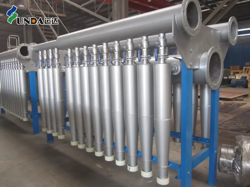 The diluted stock will enter into taper cylinder tangentially under the certain pressure, the heavy impurity will be thrown to the wall under the centrifugal force. And then move to rejecting outlet downward. There will form a low pressure zone at the center of the cone. The stock specific gravity is light, will move to low pressure zone slowly and do upward movement. And then will discharge from accept outlet. The upward stock is moving spirally and forming vortex section. Vortex movement speed will slow down due to frictional resistance of cleaner wall and accept pulp going to low pressure zone, but at the same time the radius of vortex movement is reduced, so can have enough centrifugal force to separate impurities.